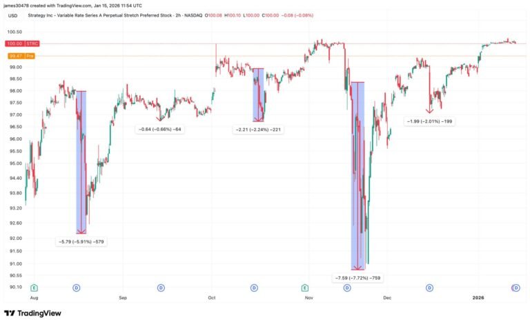 Strategy’s preferred stock, STRC, sees a familiar ex dividend dip below the $100 par level.